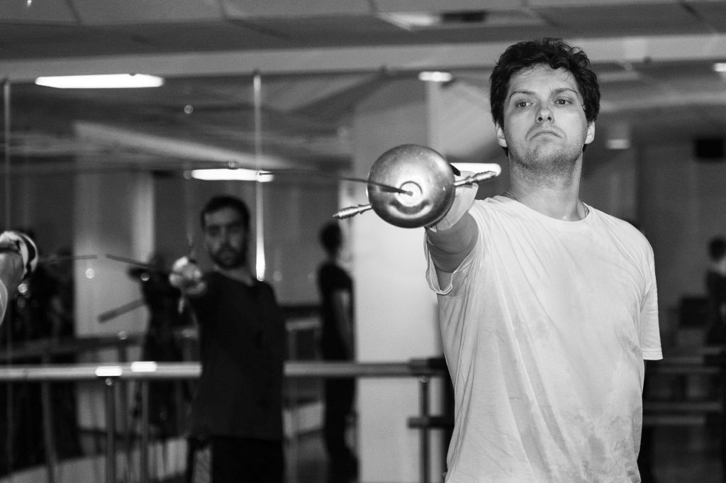 Остриё шпаг, скрещённых в танце смерти, чести и безрассудства.