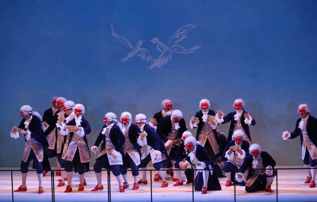 Искромётную музыку Россини Пушкин сравнивал с брызгами шампанского. Настроение праздника стремился создать и режиссёр последней постановки «Севильского цирюльника» Ален Маратра, сделав публику участниками событий своего спектакля. Вокальные партии исполняют солисты Академии молодых оперных певцов Мариинского театра — ровесники героев оперы. Действие этой динамичной постановки разыгрывается не только и не столько на сцене: артисты спускаются в зал и активно взаимодействуют с аудиторией. Зрительские ложи украшены цветами, вместо нагромождения декораций — голубое небо и белоснежные драпировки, зато костюмы невероятно красочные и разнообразные. Главным сюрпризом и кульминацией спектакля становится появление огромных ростовых кукол: это и гости маскарада, и подвыпившие офицеры, приснившиеся Бартоло. Яркая и весёлая, постановка Маратра пронизана духом Россини, который работал так же, как жил — преодолевая все трудности блестящим юмором и добрым сердцем.
