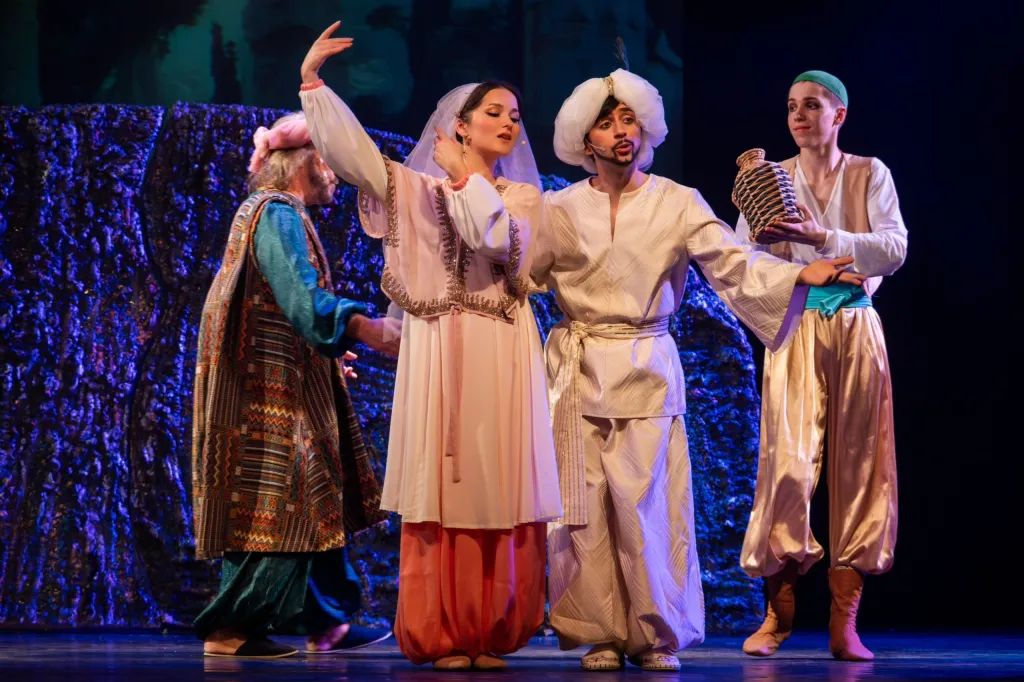 Яркая, зрелищная, захватывающая! Роскошные наряды, прекрасные танцовщицы, злые разбойники, сокровища, искрометный юмор, живая музыка джаз-бэнда, современный балет, страсть и эмоции, невероятные приключения и конечно же счастливый финал, где обязательно побеждает добро и любовь!