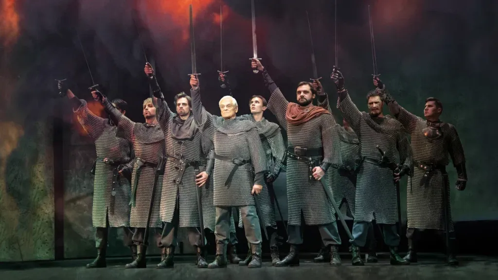 Мюзикл «Король Артур» на сцене Московского театра оперетты — это ещё одна версия мифа о легендарном короле Артуре, его последней любви и о волшебном городе-замке рыцарей Круглого стола Камелоте — оплоте благородства и мужества. В центре сюжета — противоречивый и страстный любовный треугольник Король — юная Джиневра — рыцарь Ланцелот. В яркой театральной постановке соединились мифы и эпос, фантазии и факты. Специально для спектакля по историческим документам были воссозданы доспехи рыцарей VI века — кольчуги, шлемы и мечи. На сцене благодаря декорациям и световым эффектам возникает атмосфера начала средневековья, с его замками, колдовскими обрядами и поединками.