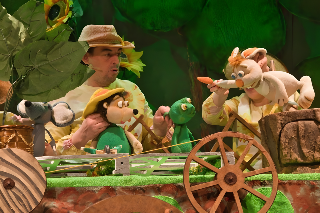 Решил как-то медведь сделать себе телегу. Вроде крепкая получилась, и колёса на месте, а толку мало: не хочет телега никуда ехать! Но стоило горе-плотнику отлучиться, как пришли бездомные зверюшки, и телега начала работать, да только не совсем по прямому назначению.