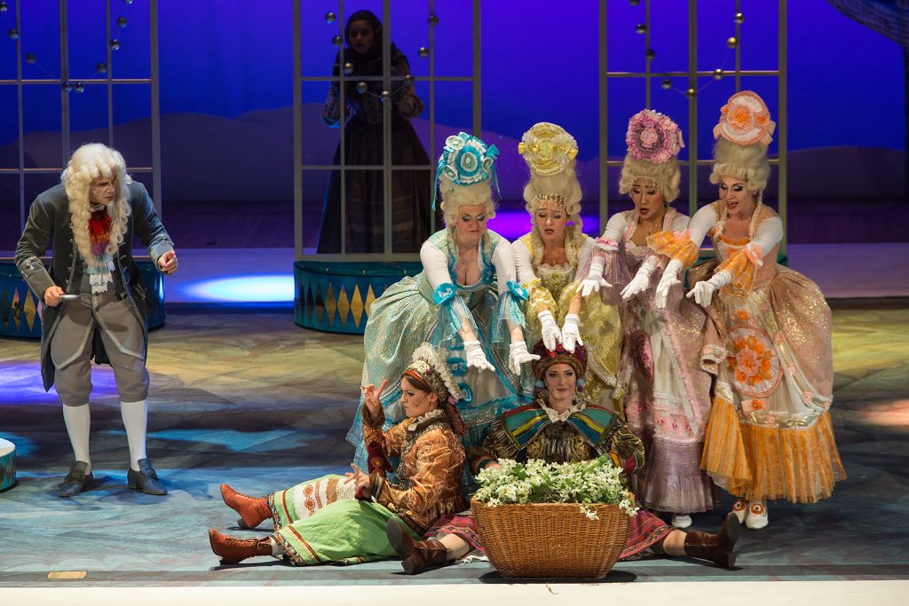 Есть тут и капризная принцесса со своими учителями, и злая мачеха, желающая получить корзину золота, и добросовестная падчерица, выполняющая всю черную работу, и ее сводные сестры-тунеядки, и, естественно, волшебные 12 братьев-месяцев. И, конечно, мачеха, услышав королевский указ, отправляет падчерицу за подснежниками в декабрьский лес... Но в версии «Театриума» принцесса отнюдь не маленькая капризная девочка, а уже невеста. И падчерица Лиза тоже.
