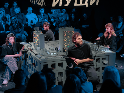 Чтобы без пафоса исследовать человеческий космос, артисты не будут примерять на себя чужие роли, а станут лишь проводниками от персонажей к зрителю. Настоящих героев спектакля — красивых, нелепых, горьких и легко узнаваемых жителей густонаселённых многоэтажек — воплотят крошечные фигурки горожан, застывших в разных позах. Фрагменты их повседневности поймает и передаст на большие экраны ручная камера.