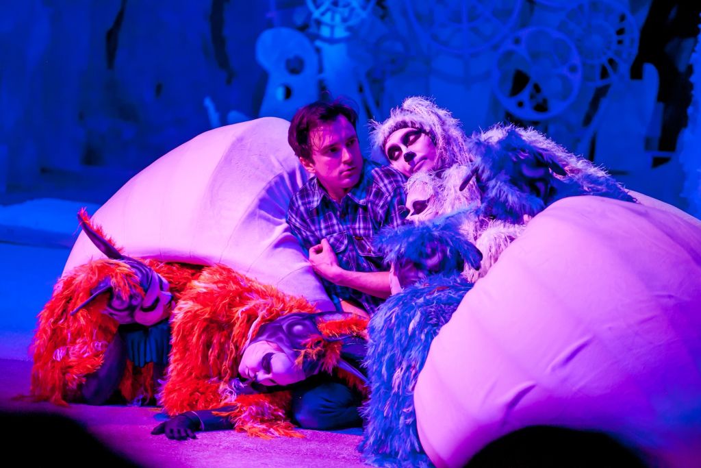 Создатели спектакля выбрали близкий сегодняшним детям язык с использованием мультиэкранов и спецэффектов, что позволяет реальным героям на сцене оказываться в волшебном мире благодаря не только театральной условности, но и сочному визуальному решению.