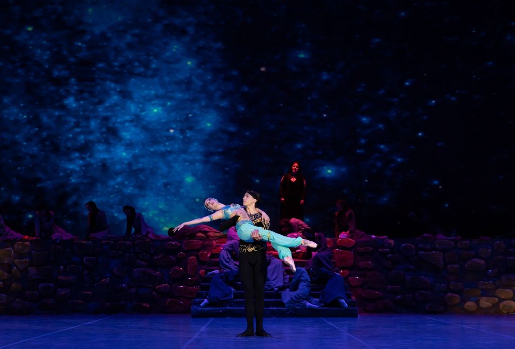 Молодой и могущественный царь Шахрияр, попрощавшись с любимой женой, отправляется на охоту. Неожиданно вернувшись во дворец, он застаёт Шахиню в объятиях раба. Обманутый муж, правитель, униженный на глазах оцепеневших от ужаса свидетелей его позора, расправляется с женой и приходит к страшному решению — казнить всех молодых женщин страны. Неистов в своём гневе Шахрияр, и тщетны мольбы обречённых на смерть женщин... Но вот в мир зла и насилия входит Красота и Мудрость — это Шехерезада. И происходит чудо. В ожесточённом сердце Шахрияра пробуждается любовь. Но он непреклонен, даже его возлюбленную Шехерезаду ждёт смерть. Начинается борьба Разума со Злом, Любви с Ненавистью. Не сразу сдаётся Шахрияр. Тысячу и одну ночь проведёт он в неведомой ему доселе прекрасной стране сказок Шехерезады прежде, чем вновь обретёт веру в Любовь и Добро... Шахрияр и Шехерезада жили счастливо. Он по-прежнему любил ездить на охоту, а Шехерезада, как гласят предания, была ему верна.