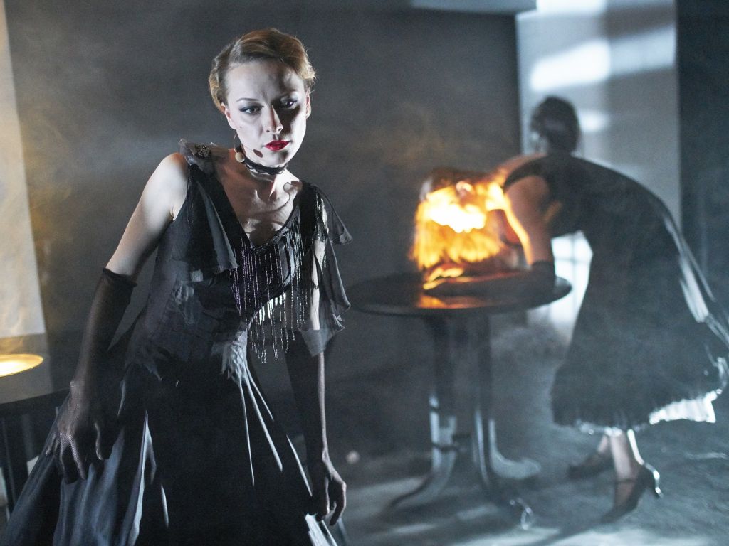 Кажется, дело происходит в кабаре? Или в обычном парижском кафе? Перед нами четыре венских стула, четыре круглых столика и четыре девушки. Каждая — со своим темпераментом, своим тембром, своей манерой пения. Четыре певицы не просто исполняют произведения Дебюсси, Равеля, Форе, Аллегри, Пиццигони и французские песни ХХ века — они грустят, веселятся, страдают, кокетничают, ссорятся, сплетничают — и каждая рассказывает историю своей жизни. Вот перед нами мидинетка, вот томная красавица, уставшая от богемной жизни, вот маленькая цветочница — а вот четыре голоса сливаются воедино, как сливаются в абсенте ноты полыни, ромашки, мелиссы и мяты. Легендарный абсент — запретный напиток, колдовское зелье, опасный галлюциноген, вдохновитель великих картин и бессмертных стихов в данном случае — скорее символ. Настоящее волшебство здесь навеяно не напитком — пением. Слушая его, легко в самом деле впасть в эйфорию.