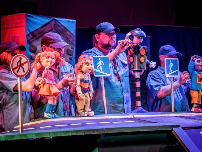 Игры, вопросы и разыгрываемые ситуации активно вовлекают детей в действие спектакля. Так что правила безопасного поведения на дороге усваиваются легко и непринуждённо. А яркие впечатления у юных зрителей остаются надолго. Спектакль рассчитан на школьников и детей дошкольного возраста.