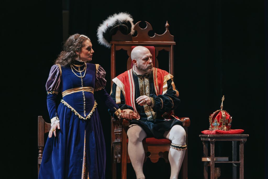 В одной из сцен спектакль мгновенно превращается в фарс. Головы летят с плеч одна за другой, жены Генриха меняются на следующую в день казни или смерти предыдущей, двор и окружение не скрывают своего отвращения к королю. Финал спектакля звучит как приговор некогда прекрасному и мудрому монарху…