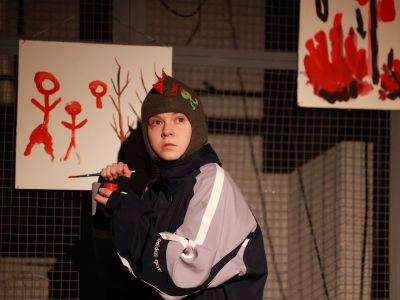 В основе спектакля — пьесы «Серая зона» и «Ложь во спасение» современных драматургов Ольги Манько из Севастополя и Светланы Тишкиной из Луганска, написанные в 2022 году. Эскиз «Ложь во спасение» режиссёра Юлии Шульевой был создан в рамках режиссёрской лаборатории «Время героев», которая состоялась в феврале 2023 года. Молодые режиссёры представили эскизы по одной из предложенных пьес авторов-современников, темы которых — события на Донбассе, подвиги новых героев—военнослужащих, мужество и стойкость мирного населения. Спектакль о том, что самое главное у человека — внутри. Об этом монолог простой женщины, героини первой пьесы, которая оказалась в «серой зоне» — территории, незанятой сторонами конфликта: «Воюем. Внутри себя, чтобы человеком оставаться, а не в зверьё превратиться». Вторая часть — зарисовка из жизни военного времени города Лисичанска: всё детство 10-летнего мальчика Ромы идёт война и о многом ему не рассказывали для его же спасения. Продолжительность: 1 час без антракта.