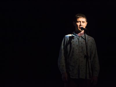 В нём заняты молодые артисты. Они рассказывают истории из жизни детдома. Сыграть детдомовских детей невозможно, для этого надо ими быть. Поэтому рассказ о жизни в детдоме мы слышим из уст актёров. Актёр повествует, рассказывает — от лица мужчины или женщины, старика или ребёнка, бога или дьявола — неважно. Он как человек-лицедей, примеряющий на себя различные маски...».