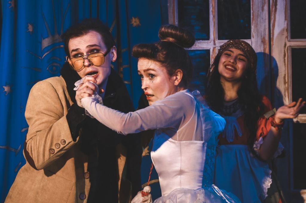 Сочетая в одной работе романтическое и комедийное, острую форму и глубокое содержание, артисты существуют в традиции комедии дель арте, используют маски.