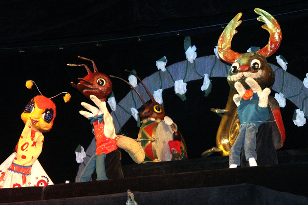 «Муха-Цокотуха» – неповторимая музыкальная сказка-игра. Известный всем сюжет сказки превращен в яркое и блестящее зрелище. Корней Чуковский писал стихи, играя с детьми. И артисты театра кукол читают его стихи, играя с юными зрителями. Поэтому история Мухи-Цокотухи, которая подверглась нападению страшного Паука, не пугает маленького зрителя. Она становится поводом для игры, яркого музыкального кукольного шоу. Незабываемым, насыщенным и интересным этот спектакль делает великолепная работа артистов-кукловодов, управляющих куклами различных систем (перчаточными, пальчиковыми, планшетными, тростевыми). Ироничную режиссуру отлично дополняют оригинальная музыка и прекрасная сценография.