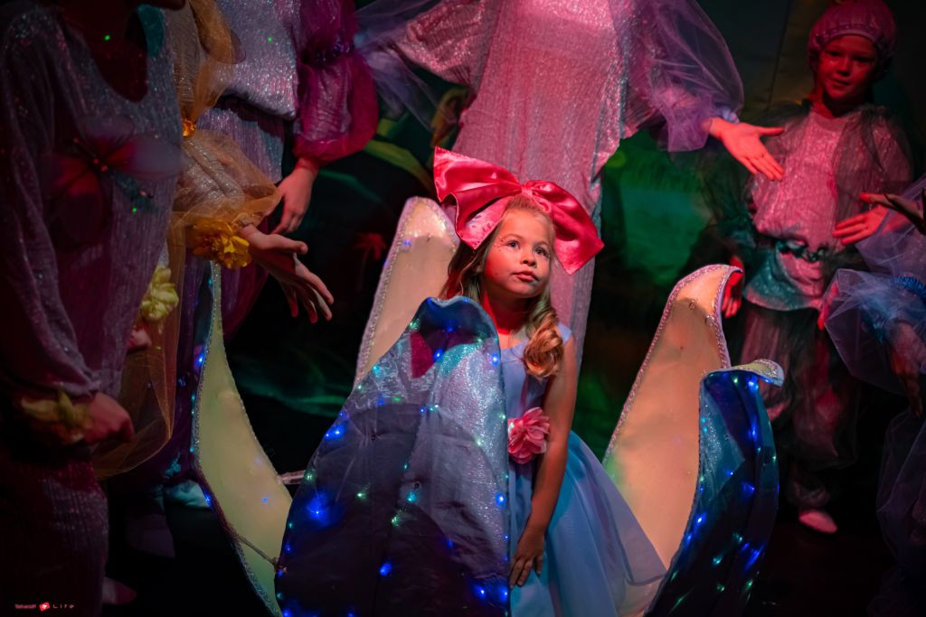 В спектакле занята театральная студия. Спектакль наполнен волшебством и вдохновением. Красочные костюмы, музыкальное сопровождение, интересные образы героев, созданные ребятами, поражают воображение.