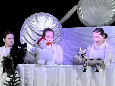 Зимняя, снежная, кукольная история о том, как Баба Яга хотела срубить Ёлочку, но храбрый Зайчик ей помешал. За это она превратила его в Снеговика, чтоб он весной растаял. Но когда рядом друзья, любое колдовство можно исправить.