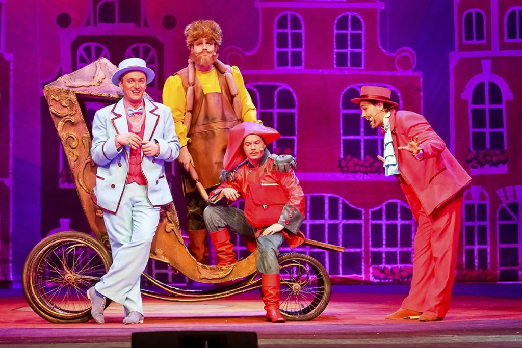 Он подарил каждому персонажу запоминающиеся песни и куплеты, и на сцене ожили в ярких образах Солдат и Принцесса, Король и Королева, глупый принц Апчхи, бедная Сиротка... И даже страшные собаки не такие уж страшные: чтобы укротить их, кроме волшебного платка нужно всего-то немного доброты и ласки.