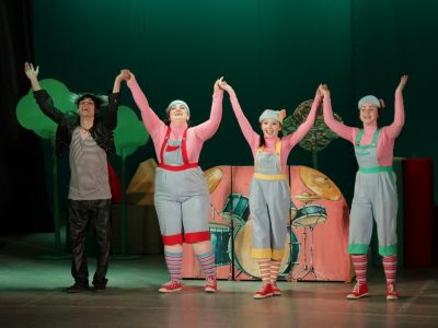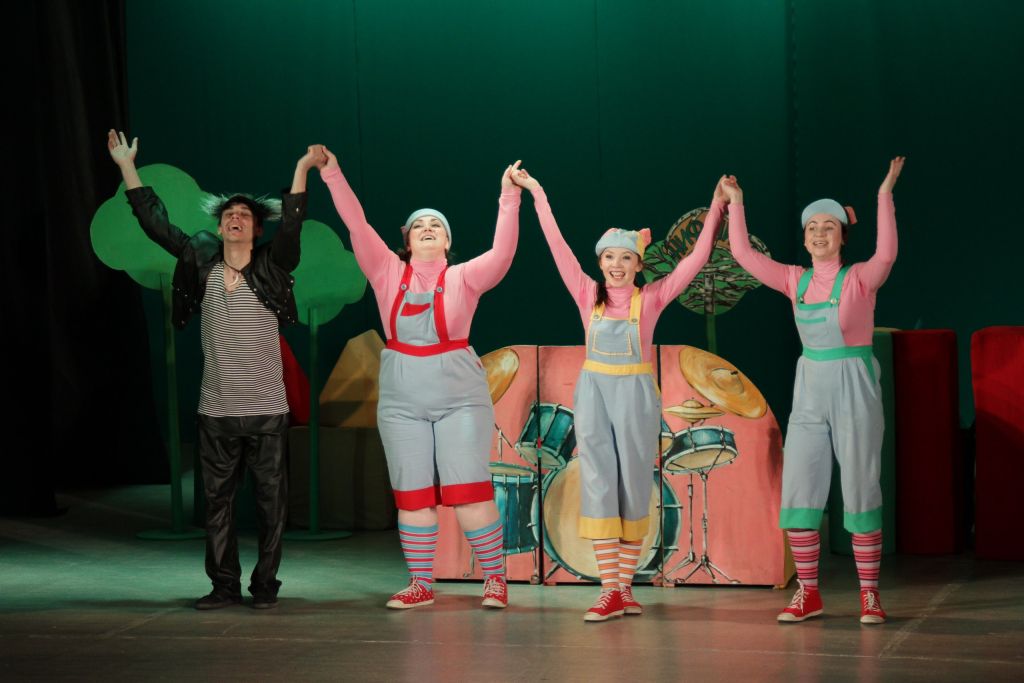 Эта задорное представление с танцами и песнями про трех братьев — поросят: Ниф-Нифа, Нуф-Нуфа и Наф-Нафа. Все лето они кувыркались в зеленой траве, грелись на солнышке, нежились в лужах. Но вот наступила осень… Самый деловой и серьезный из братьев — Наф-Наф, предлагает вместе построить каменный дом, но два других братика решили, что в последние теплые дни лучше погулять и попрыгать на лугу, чем рыть землю и таскать тяжелые камни. И тут такое началось…