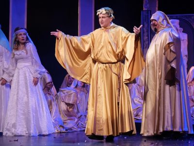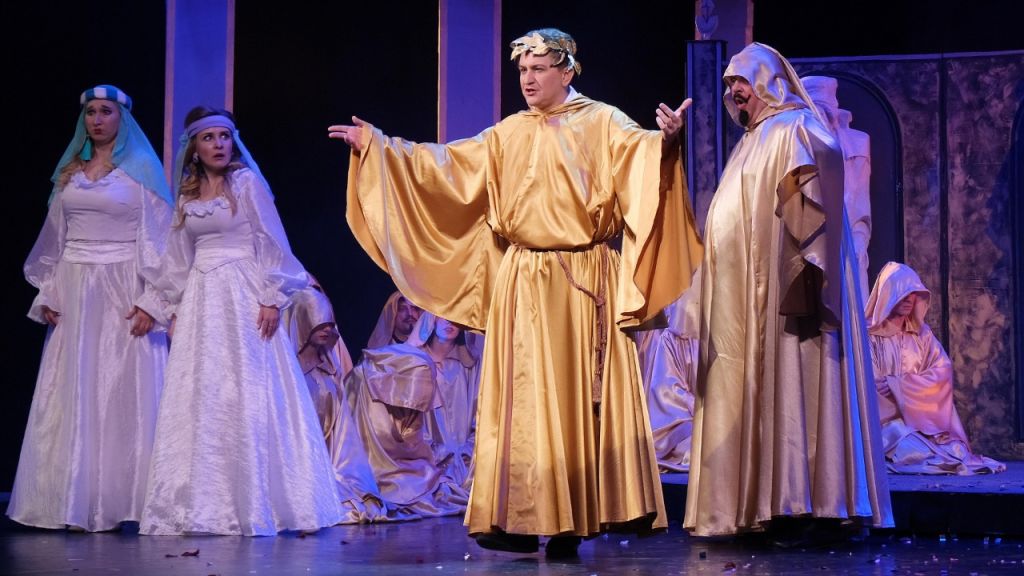 Действие спектакля разворачивается в Средневековой Европе. Два друга, странствующих комедиантов, Микаэль и Марчелло, попадают на праздничное событие, посвященное покровителю города Святому Йоргену. В свойственной вольнодумцам лицедейской манере, они высмеивают традиции и нравы, устоявшиеся на протяжении многих лет.