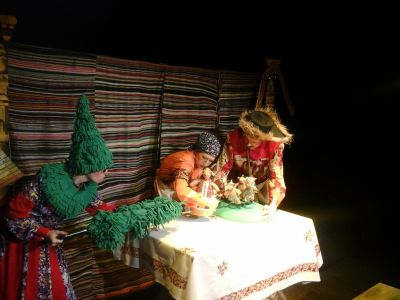 В спектакле представлены как хорошо известные сказки — «Волк и семеро козлят», «Репка», так и почти забытые «Ворона и яблоки», «Как коза дом строила» и другие. «Сказочки на лавочке» — спектакль интерактивный. По авторской задумке персонажи попадают в непростые ситуации, зовут публику сопереживать, становиться участниками игры.