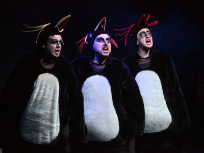 Что делать, если завтра потоп? Хорошо еще что предупредили… Три вечно спорящих, не разлей вода, пингвина друг без друга никуда. И в долгий путь на ковчеге отправляются вместе, преодолевая кучу препятствий, попадая в уморительные ситуации, с блеском выручая рассеянного Голубя, вестника Ноя. Настоящий пингвиний экшен. Притча для детей и родителей о дружбе, о том, что взаимовыручка, самоирония и фантазия могут преодолеть любые океаны невзгод. Спектакль наполнен юмором, музыкой, захватывающим действием, хорош для семейного просмотра.