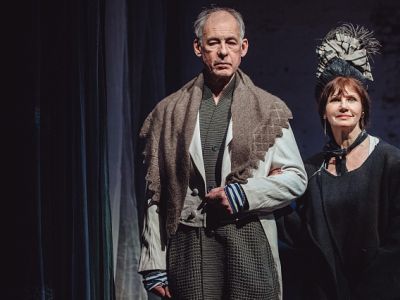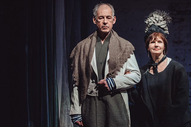 Историю о том, как купец Ермолай Лопахин, малограмотный сын лавочника, выкупил у помещицы Любови Раневской имение вместе с вишневым садом и потом хватил топором по этому саду, чтобы на его месте построить дачи и сдать их в аренду, ставили-переставили. Юрий Погребничко населил чеховскую комедию героями совсем другой истории — Гамлетом, Розенкранцем, Гильденстерном и Полонием. И ещё актёром бродячего театра, который разыгрывает посередь «Вишневого сада» сцену гибели Приама и рассказывает о страданиях его жены Гекубы. И как у Чехова, в новом спектакле театра «Около» птицы поют в саду и вороны каркают. Епиходов поёт под гитару, но струны не рвёт.