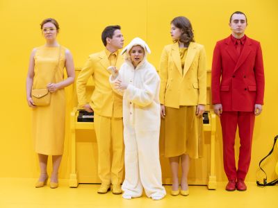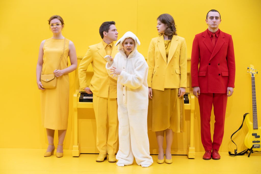 Художник спектакля придумал ярко-жёлтое пространство с жёлтыми предметами и героями в ярко-жёлтых костюмах, окруженное рамкой тонкого люминисцента. В тайную комнату детства ведет всего один ярко-синий портал лифта. А Капитан Крюк, как вечное альтер-эго героя, одет в непобедимо-стильный благородно-красный костюм цвета самого страшного детского страха.
