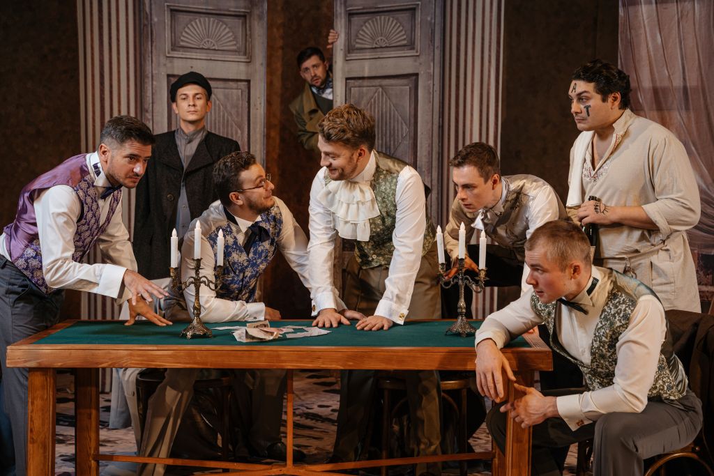 Авантюрист и шулер Ихарев обладает необычайным умом и сообразительностью, что очень помогает ему в его сомнительных заработках. Как-то приехав в уездный город, он останавливается в трактире, где идет активная игра в карты. Вооружившись краплёной колодой, он решает поживиться за их счет. Но не тут-то было... Надо же такому случиться — находятся точно такие же сообразительные товарищи, которые тоже хотят свой куш. Желая переплюнуть великих знатоков своего дела, главный герой сам попадает в весьма сложную ситуацию. Непревзойдённый автор вложил в эту пьесу всё: и драму, юмор, интригу, сатиру. А в руках талантливого режиссёра известная пьеса воплотилась новым искромётным прочтением, полным яркой молодой энергии и авантюризма, в исполнении прекрасных популярных актёров театра и кино. Спектакль идёт с антрактом. В составе исполнителей возможны изменения без дополнительного уведомления.