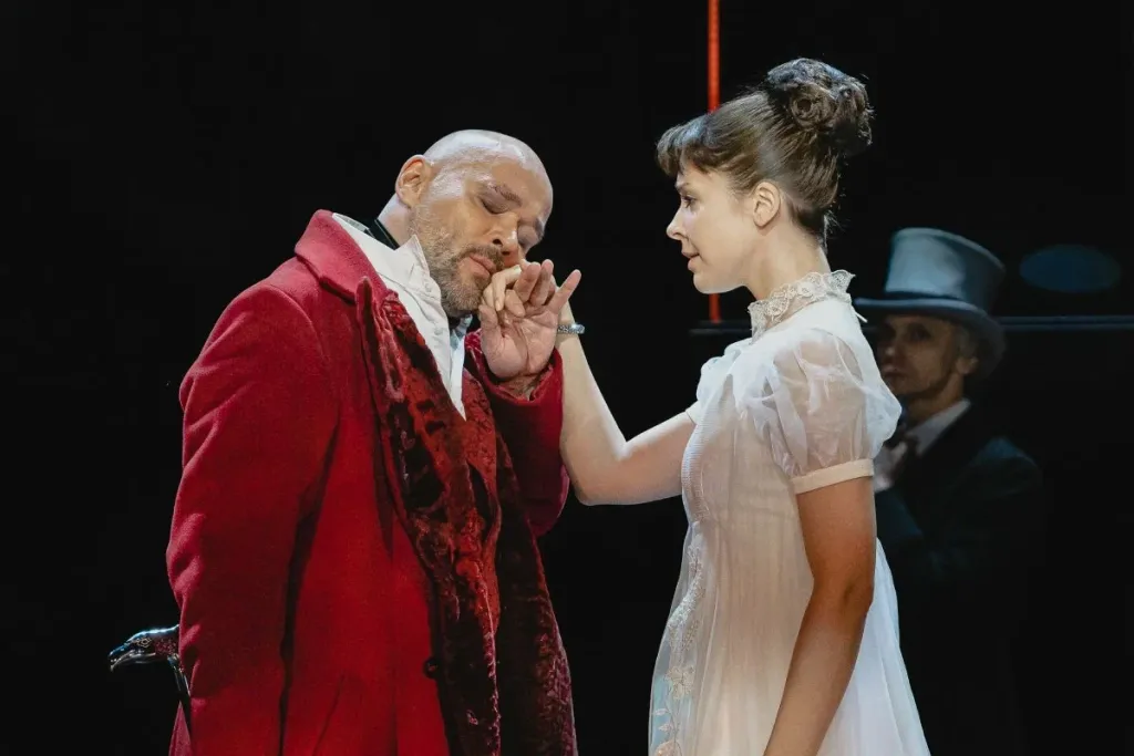 Грандиозный бал-спектакль с огромными масками, роскошными костюмами и масштабными декорациями переводит фокус внимания зрителя со слов на эмоции и поведение героев. Меняются сцены, места, события, но неизменными остаются люди — объекты лермонтовской сатиры. Понять глубже происходящее на сцене помогает музыка композитора Павла Акимкина: она переносит зрителя из атмосферы беспечности и счастья в темный мир человека, потерявшего собственный рай.