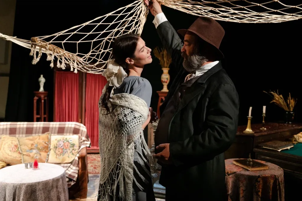 Этот спектакль, очень бережный по отношению к классику, открывает в произведении совершенно новые грани. Здесь и переливы света, и «разомкнутость» пространства, и легкая грусть, и поэзия ушедшего мира русской усадьбы — чеховский импрессионизм, и, конечно, юмор. Собственно сюжет пьесы — афёры с векселями — подается остро, подчас гротескно. Современные ассоциации не подчёркиваются режиссером, они приходят сами собой.