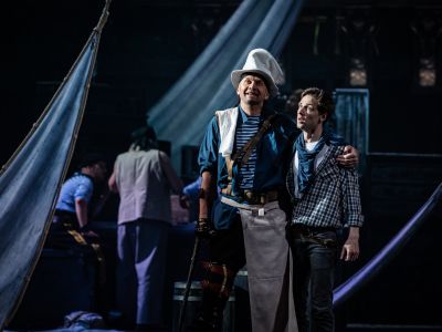 В прочтении режиссера Александра Коручекова всемирно известный приключенческий роман для детей становится «романом взросления» для подростков. Здесь мерцают в тумане белые паруса, сумрачное пространство корабельного трюма не дает поблажки ни слепым, ни одноногим, а сольные рок-баллады пиратов сменяются перестрелками и рукопашными боями.
