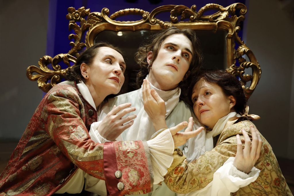 Следуя за Толстым, Достоевским, Гончаровым, Чеховым, Буниным, подражая их языку, цитируя и вступая с ними в диалог, Елена Гремина в пьесе «За зеркалом» продолжает размышлять о России и русском человеке, о судьбе, о духе и путях Спасения. Любовь — основа этих размышлений. В образе Екатерины нам является страдающая от нелюбви душа России, нуждающаяся в надёжной опоре. Единственным преданным ей, искренне любящим и верным другом становится Александр Ланской. Через любовь Сашеньки и Императрицы автор пытается показать нам что же такое «русская» любовь, и в чем проклятие двойственности личности правителя, вынужденного идти против человеческих чувств во имя решения «больших задач»