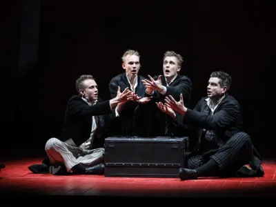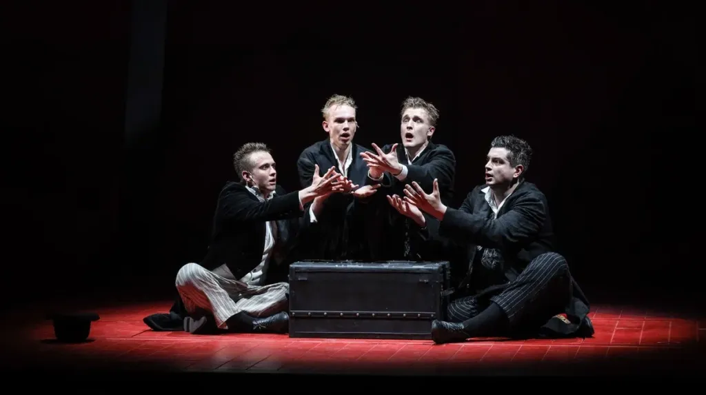 Из облака пыли над упавшим телом появляются четыре тени, четыре части души, четыре клоуна: рыжий, белый, черный и длинный. Долгие годы эта четверка томилась в теле упавшего Клоуна и вот теперь — долгожданная свобода.