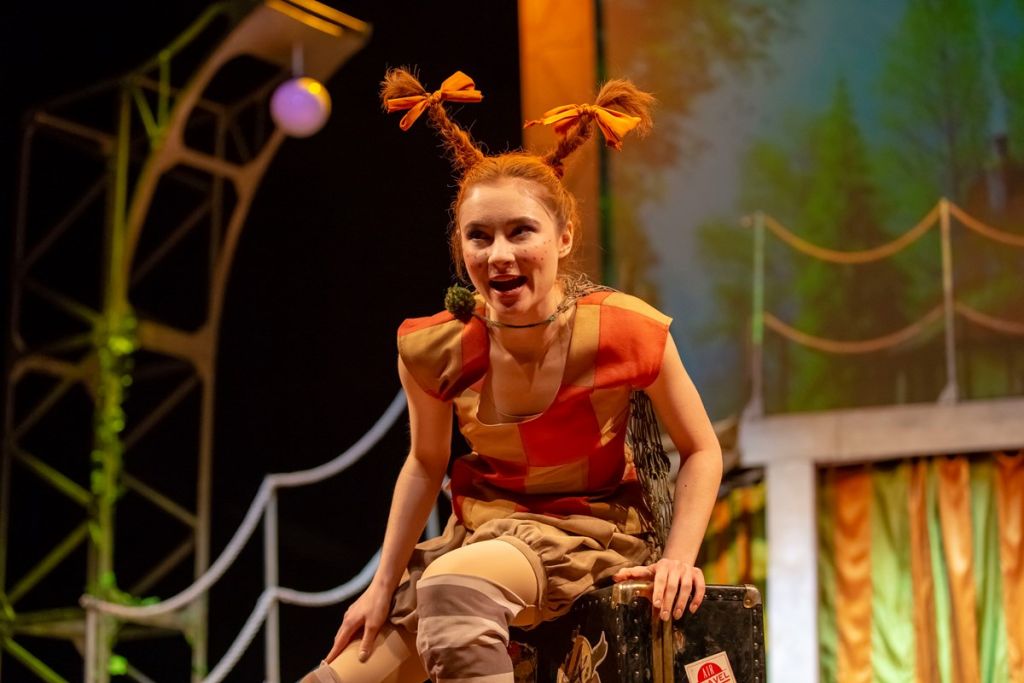 Детский музыкальный спектакль по мотивам повести Астрид Линдгрен — бурлеск, настоящее театральное пиршество. Родители, пришедшие вместе с детьми на этот спектакль, смогут окунуться в яркий, озорной, фантастический мир детства. Спектакль придуман как такая озорная игра, когда никто не сможет усидеть на месте. Да и нужно ли? Если можно поплясать зажигательные танцы с самой Пеппи, поиграть в мяч с Кукарямбой, поучаствовать в самом настоящем цирковом представлении — скучать у нас не придётся никому!