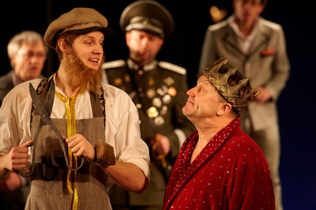 Это не совсем «Голый король», и не то чтобы «Дракон», и точно не «Тень» — это какая-то другая сказка. Известный кинорежиссёр Сергей Урсуляк дебютирует на театральной сцене вольным пересказом всего Шварца разом и даже вплетает в него малоизвестный киносценарий «Каин 18», написанный вместе с Николаем Эрдманом. Крупным планом в камерном пространстве на Сретенке режиссёр выводит вечно актуальный юмор Шварца, который замешан не столько на злобной сатире, сколько на самоироничном и доброжелательном подходе к миру в любом его проявлении: добро и зло, любовь и предательство, власть и её ничтожность. Урсуляк превращает сказочную философию драматурга в театр яркой формы, откровенной актёрской импровизации и дуракаваляния. Если и идти на глубину — то с лёгкостью и музыкой.