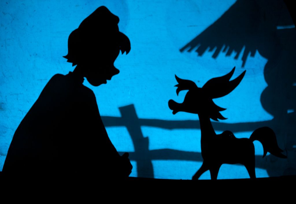В спектакле используются русские теневые куклы, чья особая конструкция была разработана специалистами Московского детского театра теней.