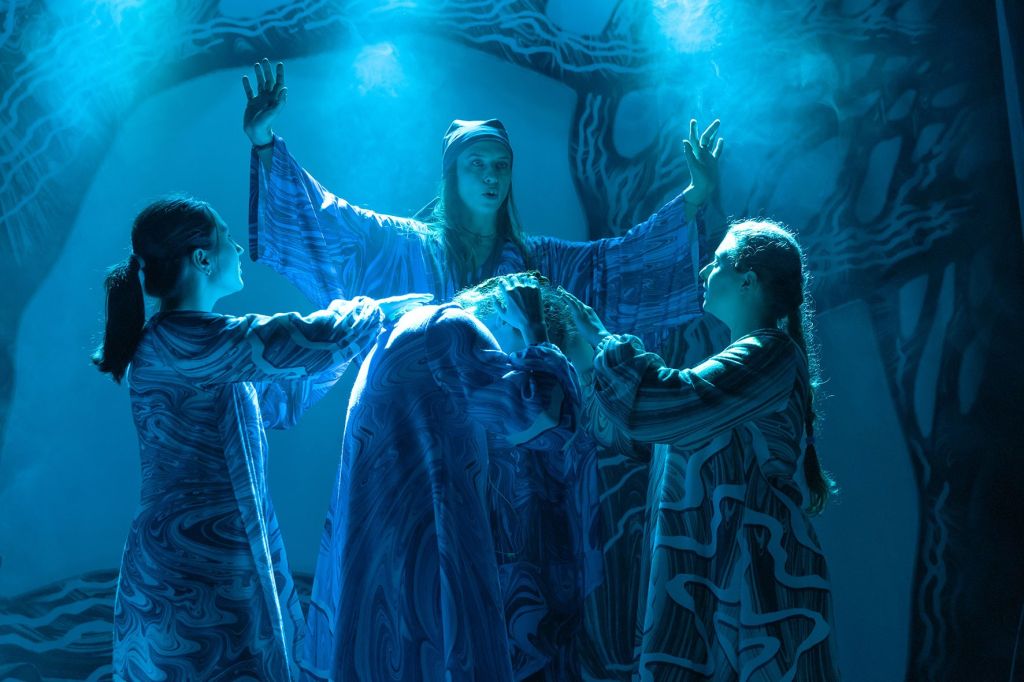 Спектакль, щедро наполненный фольклорными образами, языческими обрядами и славянскими этническими мелодиями, поставлен по мотивам всеми любимой, знакомой с детства сказки. Традиционные мотивы широко используются в костюмах и декорациях, а русские теневые куклы и живая актёрская игра перенесут вас в удивительный мир русских народных легенд и преданий.