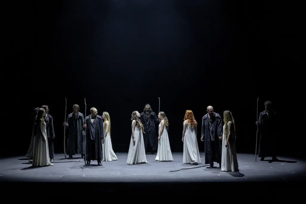 Яркое скифское буйство, грустная удаль и нежное хулиганство есенинской поэзии прорастает на сцене из звуков и ритмов, из стихов и песен; вытекает из тягучих звуков донского казачьего рылея; рождается из свиста косы и стука деревянного посоха. Здесь играет всё — слова, вещи, ритмы... Казачьи песни здесь соседствуют со стихами Летова и Башлачёва, а предельный минимализм оформления вдруг взрывается тревожным кроваво-алым цветом.