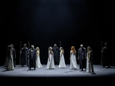 Ритм и рифма, звуки и тишина, слово и движение сплетаются в спектакле в одну протяжную сказку, рассказанную каликой перехожим при свете костра о Емельяне Ивановиче Пугачёве.