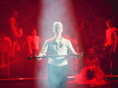 Гамлет в исполнении Антона Шагина предстает на сцене как архетипический образ метущейся в поисках Бога души. Вместе с тем герой Шагина — наш современник, столкнувшийся со злом не только вовне, но и внутри себя самого: он ищет истину, но решается на страшные поступки.