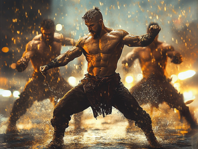 В центре спектакля — не просто танец. Это пульсирующий ритм битв и тишина перед бурей, ярость схватки и нежность прощания. Хореография вбирает в себя самые разные стили: от народных мотивов до современной пластики, от резких, рубленых движений до плавных, почти воздушных парений. А дождь, льющийся на сцену, становится то стеной, сквозь которую прорываются герои, то зеркалом, отражающим их эмоции.