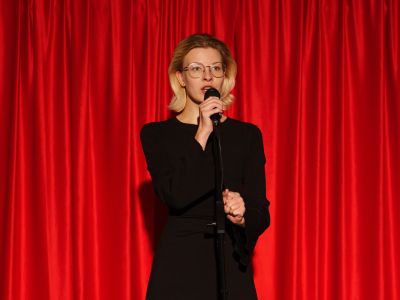 Форма спектакля балансирует между документальным театром, сторителлингом и стендапом: только микрофон, голос и искренность.