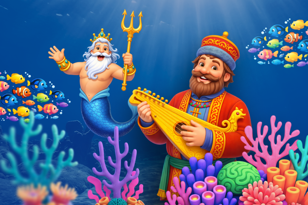 Добро пожаловать в славный Новгород — город купцов, гусляров и широких раздольных песен! Молодой гусляр Садко мечтает покорить сердца песней, но жажда славы и богатства уводит его от истинного призвания. Получив от Морского царя волшебные золотые струны, он становится знаменитым, но теряет главное — любовь, верность и связь с родной землёй.