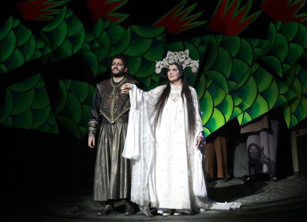 У французского режиссёра Шарля Рубо образование художника-графика и большой опыт работы в сфере рекламы. Реклама как жанр требует максимально сжатого высказывания, яркого и не перегруженного сложностями. Следы этого подхода видны в постановке: спектакль выстроен логично, имеет простую, но красивую образную систему. Герои в восточных костюмах действуют на фоне определённых цветовых схем, крепко связанных с настроением музыки. Зловещему началу соответствует чёрная гамма, император Альтоум появляется в богатстве золота, а праздничный, яркий финал окрашен в алый цвет.