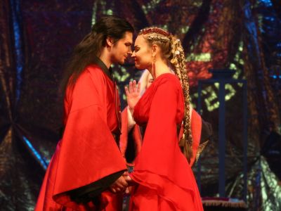 Сюжетная конкуренция главных героев наполнена множеством неожиданных поворотов, но таинственность повествования, очарование поэтического красноречия, красочность и сценическая изобретательность спектакля не затмевает серьёзности их философского диалога. Что же самое главное в отношениях мужчины и женщины? Только искренняя любовь.