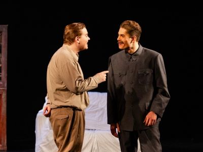 Герои — Сталин и Киров, место и время действия — СССР тридцатых годов. Я мог бы их назвать, допустим, Соловьёвым и Ларионовым, но тогда пришлось бы долго объяснять, что один — волевой, а другой — не очень; я был бы рад поместить моих героев на Луну образца 2020 года, но тогда требовалось бы рассказать, отчего в этот момент там сложилась такая безрадостная атмосфера. Обычно я избегаю писать об исторических лицах, потому что реальный контекст отвлекает. Речь ведь идёт не о конкретных людях, а о человеческих типах».