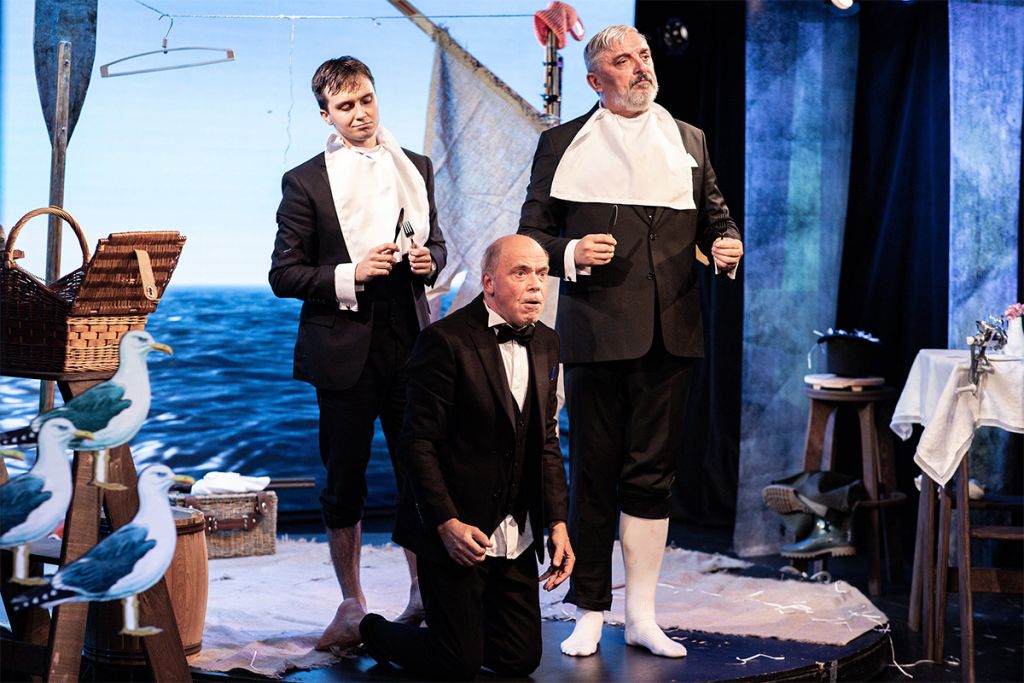 В кинематографе есть традиционное направление, именуемое мейнстримом. Оно доступно и понятно всем. А есть вкусное, элитарное авторское кино, где мы душевно взрослеем и получаем удовольствие другого уровня. Так и в репертуаре «Легенды» спектакль «Трое на плоту, не считая носорогов» стоит особняком, доставляя удовольствие людям, парадоксально мыслящим и ценящим тонкие подтексты, связывающие прошлое и настоящее. Этот спектакль — разговор о темах актуальных, но представленных зрителю оригинальным эзоповым языком! Постановка для гурманов!