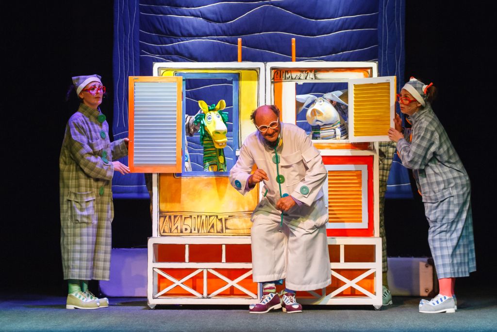 Доктор Айболит в этом спектакле, как и в сказке Корнея Чуковского, конечно же, очень добрый. А ещё странный… И не только потому, что понимает язык зверей. Ему совершенно безразличен комфорт, ему достаточно солнца над головой и, конечно, чтобы все были здоровы.Конечно же, появится и Бармалей — а как же без него? Устроит настоящий шурум-бурум, но в конце спектакля обязательно попросит прощения и станет хорошим.