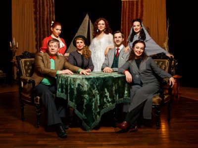 Места в театре располагаются за столиками. Можно сделать заказ по меню авторской кухни и барной карте.