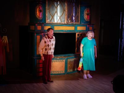 Здесь же — на малой сцене театра — вдруг оживут, заговорят и запоют всегда доселе молчаливый шкаф и все его многочисленные обитатели: чашки, чайник, гранёный стакан, металлические ложки, тарелки и даже бейсболка папы.