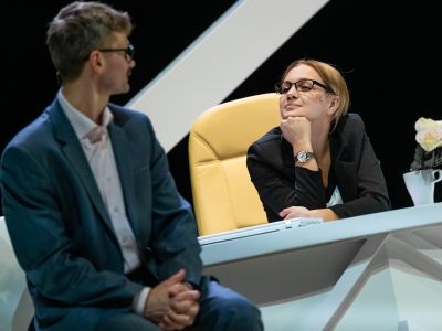 Знакомый сюжет о любви подчиненного и начальницы разыгран в интерьерах современной торговой корпорации — непринужденно, с юмором и на злобу дня, порой весьма острую на язычок и очень приближенную к реальности. В чертах Калугиной легко распознать реальную бизнес-леди, Верочка залипает в Инстаграм, а Шурочка то и дело устраивает интерактив с залом, собирая деньги на очередное что-то.