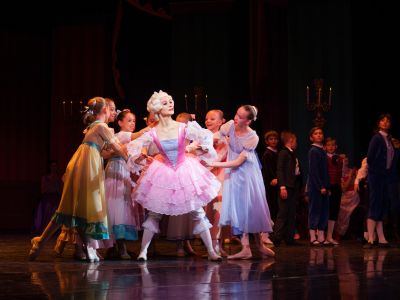 «Щелкунчик» не нужно долго представлять — как не нужно объяснять, что такое Новый год. Играет по-моцартовски прозрачная увертюра, падает снег, медово светятся окна дома Штальбаумов, а в доме горит огнями рождественская ёлка. Потом ёлка вырастает, пряничные солдаты сражаются с крысами, кукла для колки орехов превращается в принца, и все отправляются в страну сластей.